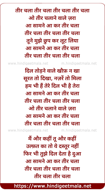 Lyrics of Tir Chalaa O Tir Chalaane Vaale Zaraa - तीर चला ओ तीर चलाने वाले ज़रा