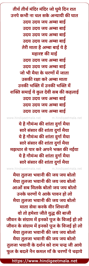 uday uday jai amba baayi