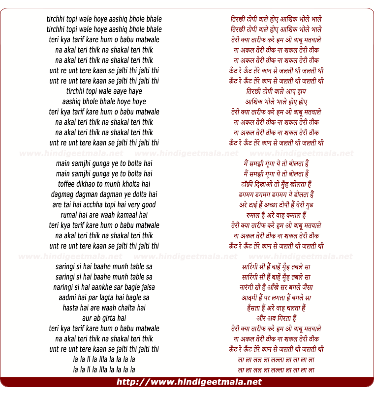 Comments for lyrics of song "Tirchhi Topi Wale"
