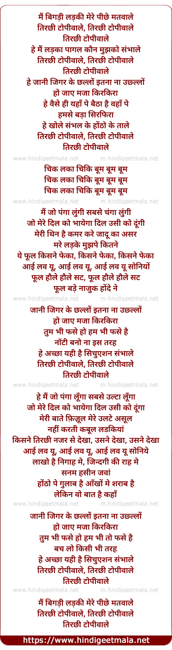 Lyrics of Tirchhi Topiwale - तिरछी टोपीवाले