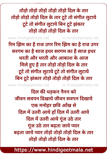 todo todo todo dil ke tar tute to sangeet lutaye