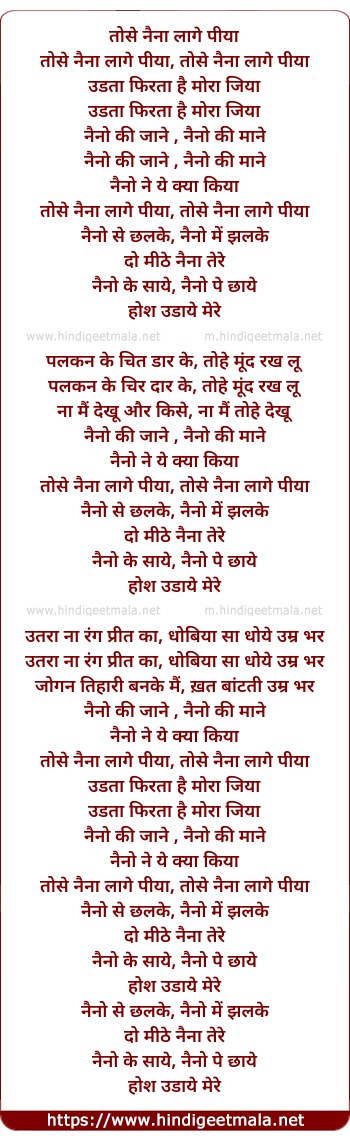 tose naina lage piya, tose naina lage piya