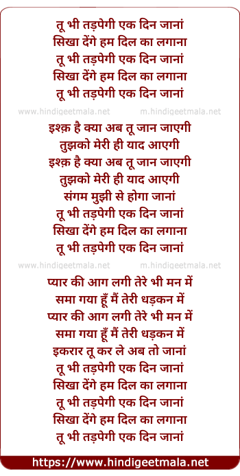 Lyrics of Too Bhee Tadapegee Ek Din - तू भी तड़पेगी एक दिन