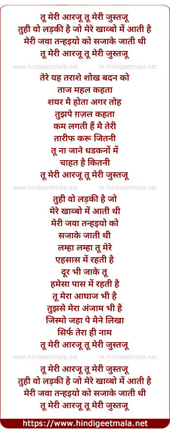 Lyrics of Too Meree Aarju, Too Meree Justju