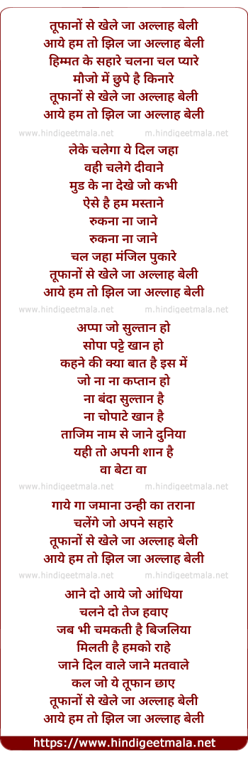 Lyrics of Toofano Se Kheleja Allah Beli