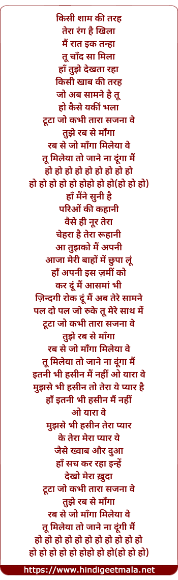 Lyrics of Toota Jo Kabhi Tara - टूटा जो कभी तारा