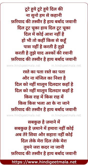 Lyrics of Toote Hue Dil Ki Na Suno - टूटे हुये टूटे हुये दिल की