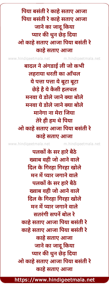o kaahe sataae aaja piya basanti re