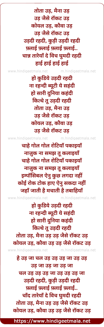Lyrics of Tota Udd - तोता उड़