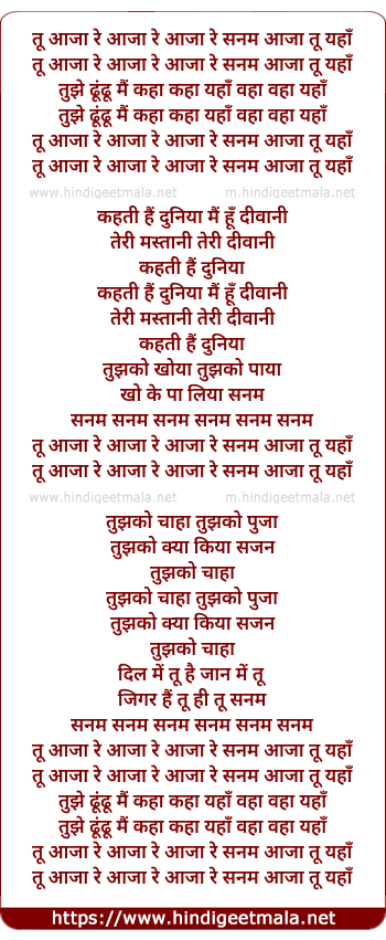 tu aaja re aaja re aaja re sanam aaja tu yaha