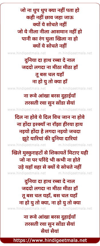 jo na dhup dhup kya nahi pata ho kahi nahi chaav jaha jaau