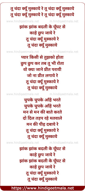 Lyrics of Tu Chanda Kyu Muskaye - तू चंदा क्यूँ मुस्काये