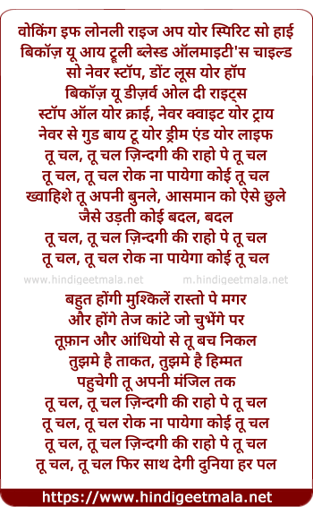 tu chal, tu chal zindagi ki raaho pe tu chal