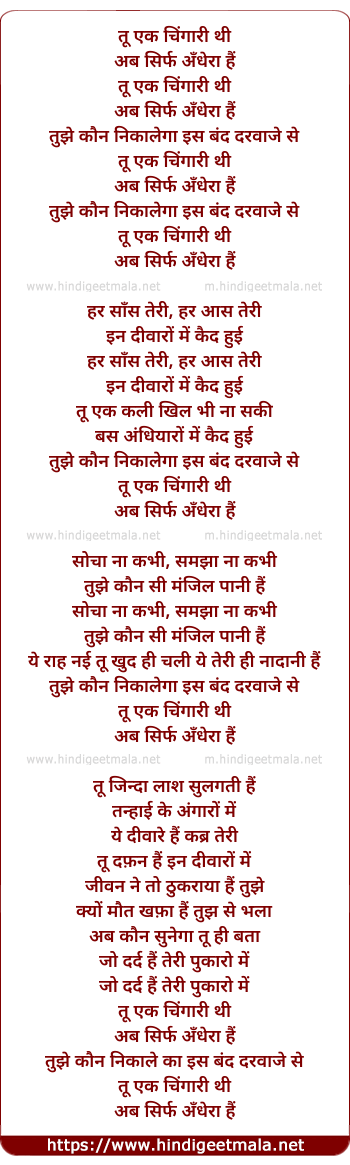 Lyrics of Tu Ek Chingari Thi - तू एक चिंगारी थी