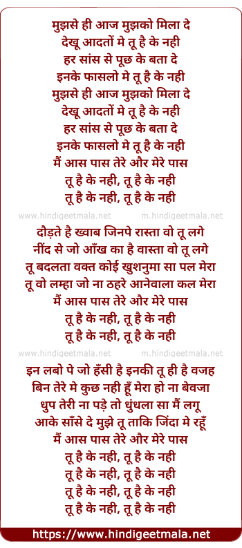 Lyrics of Tu Hai Ke Nahi - तू है के नही