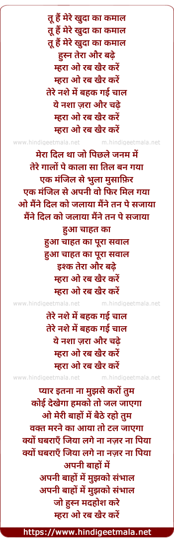 Lyrics of Tu Hai Mere Khuda Ka Kamaal - तू हैं मेरे खुदा का कमाल