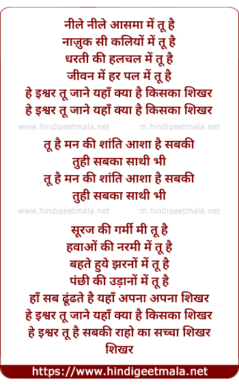 he ishwar tu hai sabki raho ka sacha shikhar
