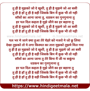 Lyrics of Tu Hi Hain - तु ही है मुझको जो दे खुशी, तु ही है मुझमे जो आ बसी