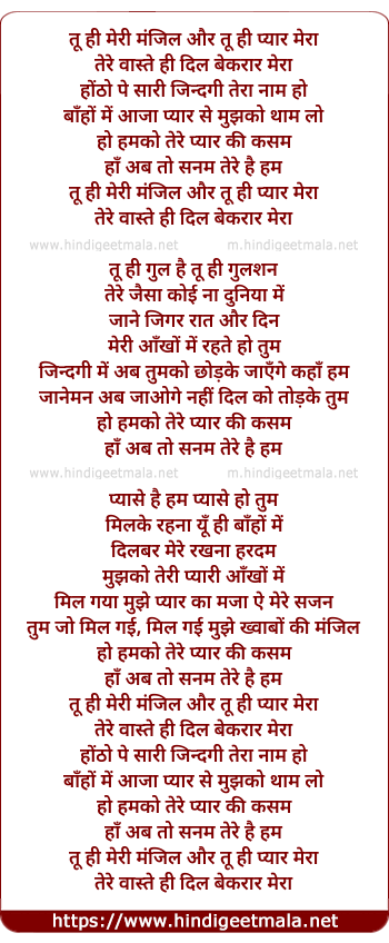 tu hi meri manjil aur tu hi pyaar mera