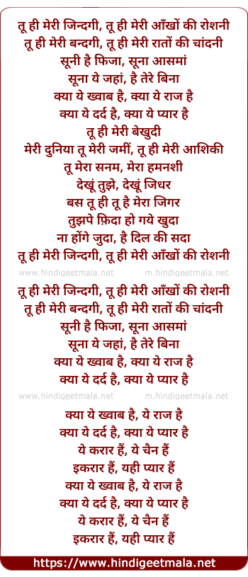 Lyrics of Tu Hi Meri Zindagi - तू ही मेरी जिन्दगी, तू ही मेरी आँखों की रोशनी