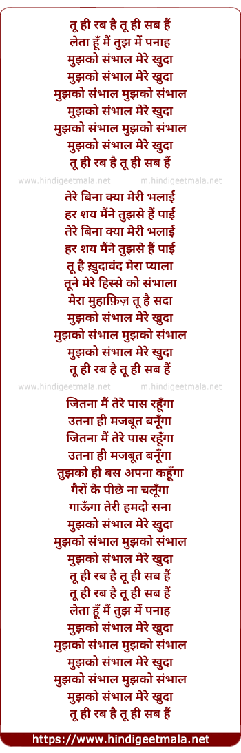 Lyrics of Tu Hi Rab Hai - तू ही रब है तू ही सब हैं
