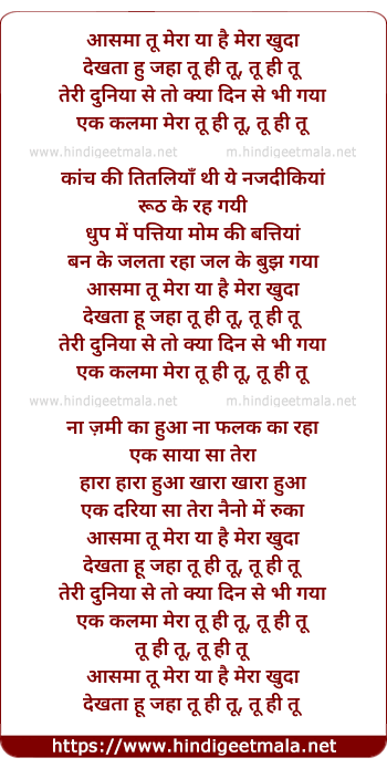 Lyrics of Tu Hi Tu - तू ही तू