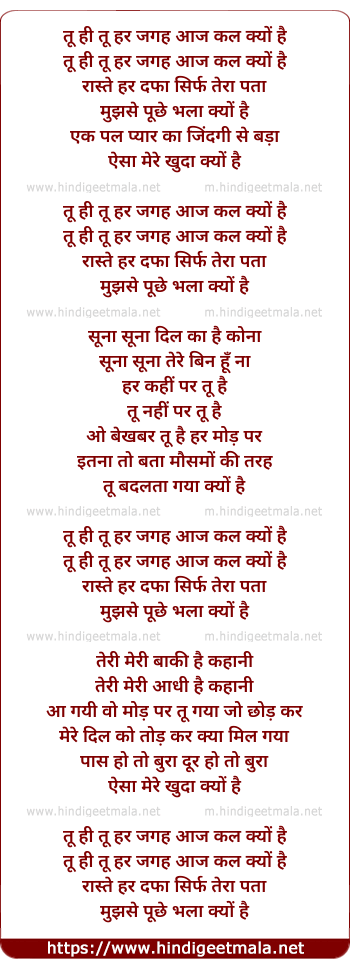 tu hi tu har jagah aaj kal kyun hai