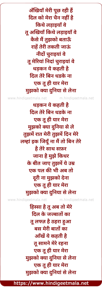 Lyrics of Tu Hi Yaar Mera - तू ही यार मेरा