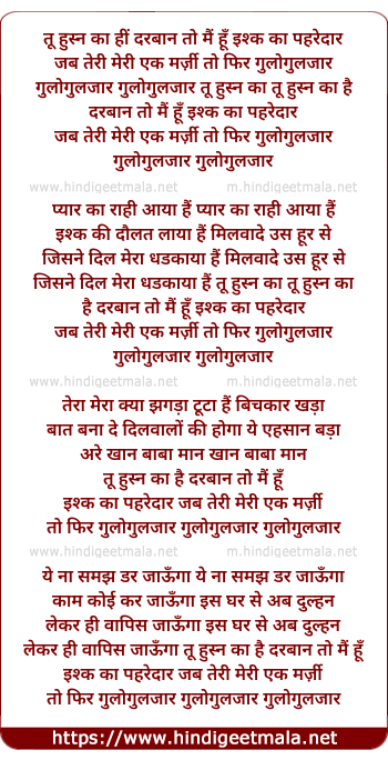 Lyrics of Tu Husn Ka Hai Darbhan - तू हुस्न का है दरबान