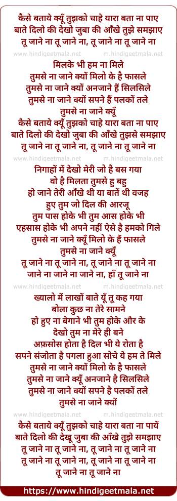 Lyrics of Tu Jaane Na Tu Jaane Na - तू जाने ना तू जाने ना