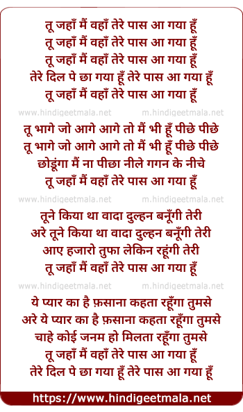Lyrics of Tu Jaha Mai Waha - तू जहाँ मैं वहाँ