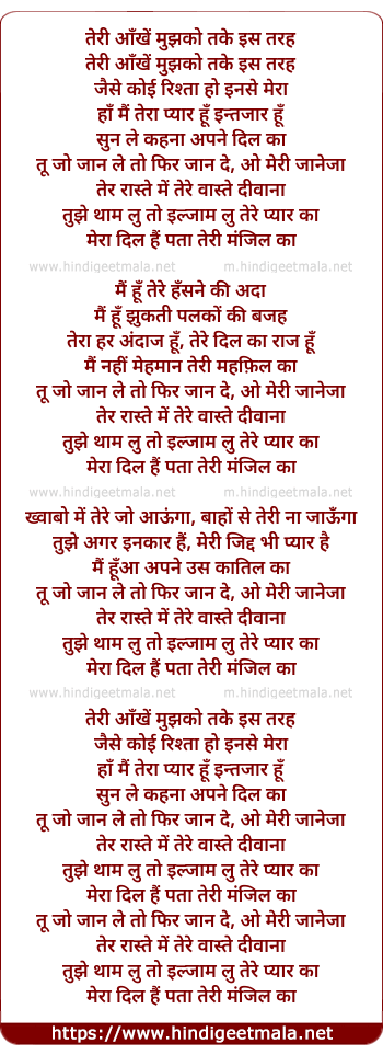 teri aankhein mujhako take iss tarah