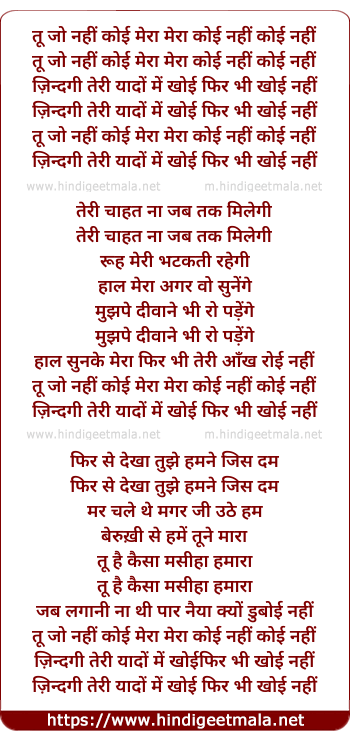 Lyrics of Tu Jo Nahi Koi Mera Mera Koi Nahi - तू जो नहीं कोई मेरा मेरा कोई नहीं