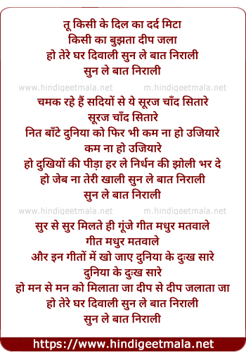 Lyrics of Tu Kisee Ke Dil Kaa Dard Mita - तू किसी के दिल का दर्द मिटा