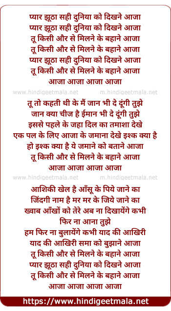 pyar jhutha sahi duniya ko dikhane aaja