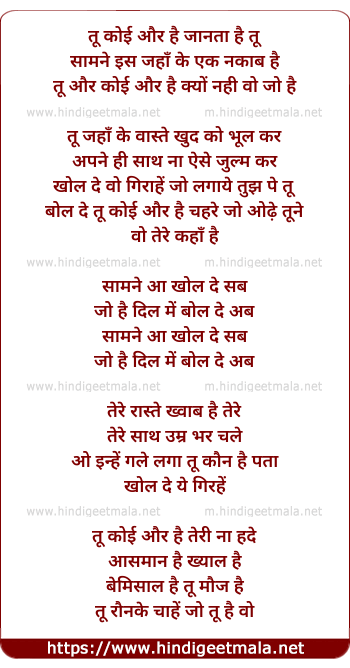 Lyrics of Tu Koi Aur Hai - तू कोई और है