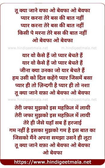 Lyrics of Tu Kya Jaane Vafaa - तू क्या जाने वफा ओ बेवफा ओ बेवफा