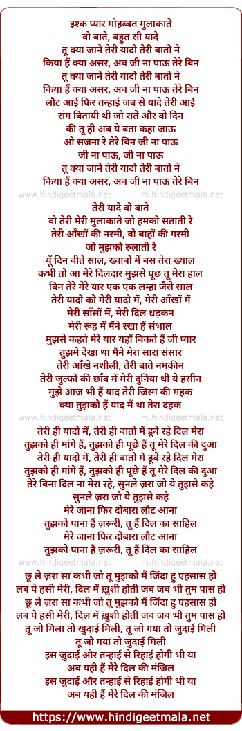 Lyrics of Tu Kya Jane - इश्क प्यार मोहब्बत मुलाकाते