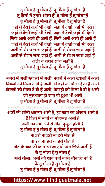tu maula hai tu maula hai, tu maula hai tu maula hai