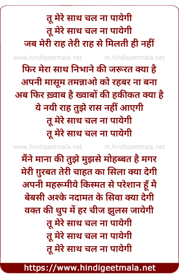 Tu Mere Saath Chal Na Paayegi - तू मेरे साथ चल ना पायेगी