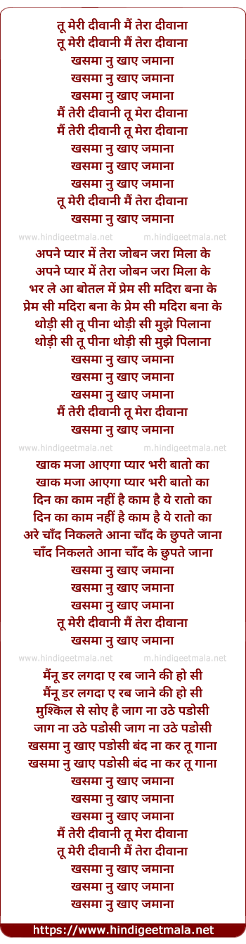 Lyrics of Tu Meri Deewani - तू मेरी दीवानी