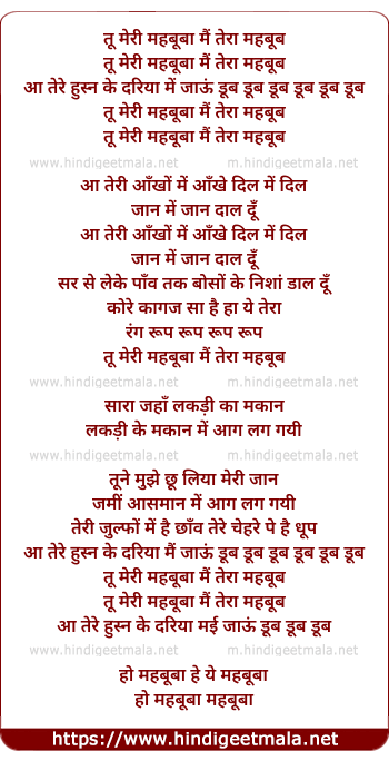Lyrics of Tu Meri Mehbooba, Main Tera Mehboob - तू मेरी महबूबा ,मैं तेरा महबूब