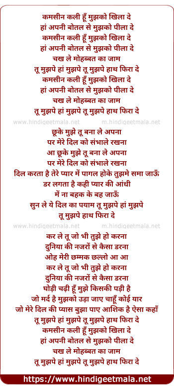 kamsin kalee hun tu mujhako khila de
