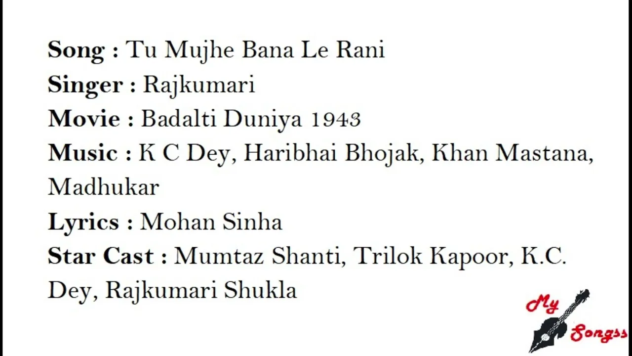 SingerRajkumari, K C Dey, Mumtaz Shanti, Khan Mastana