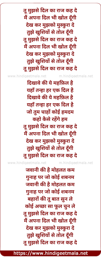Lyrics of Tu Mujhse Dil Kaa Raz Keh De - तू मुझसे दिल का राज कह दे
