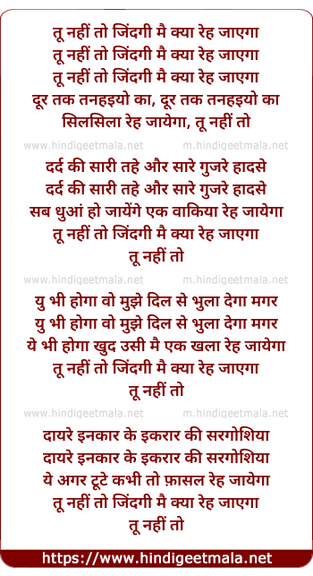 Tu Nahin To Zindagi Main Aur Kya Rah Jaayegaa - तू नहीं तो जिंदगी मै क्या रह जाएगा