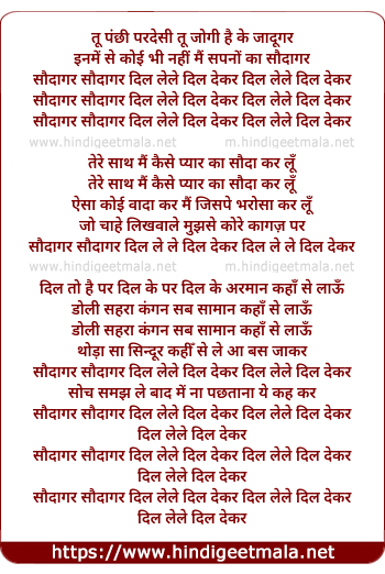 Lyrics of Saudaagar Saudaagar Dil Lele Dil - सौदागर सौदागर दिल लेले दिल