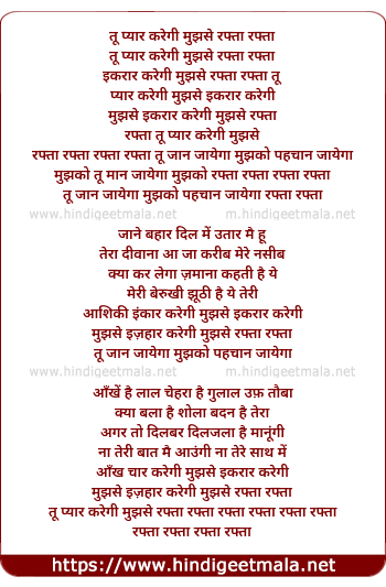Lyrics of Tu Pyar Karegi Mujhse Rafta Rafta - तू प्यार करेगी मुझसे रफ्ता रफ्ता
