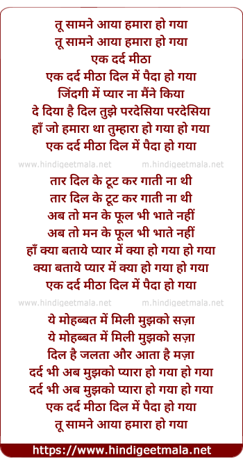Lyrics of Tu Samne Aaya - तू सामने आया हमारा हो गया