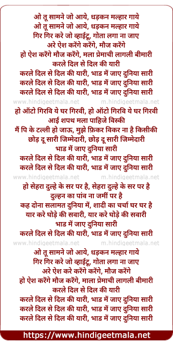 karle dil se dil ki yari, bhaad me jaye duniya sari